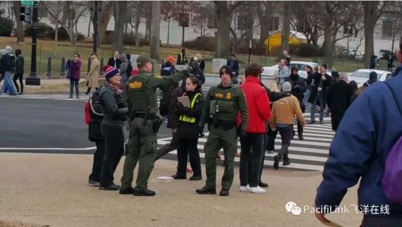 3. 各州警力支援 这么重大的活动自然也需要大批警察维持秩序,华盛顿DC的警力远远不够,因此很多州都派人支援。小编看到的就有德州,佛罗里达,亚利桑那等地的军警。今天在火车站居然碰到三位加州赶来支援的警察,还特意告诉我们怎样辨别抗议者的服饰,并叮嘱我们早点离开DC,在大批抗议者离开之前坐火车。