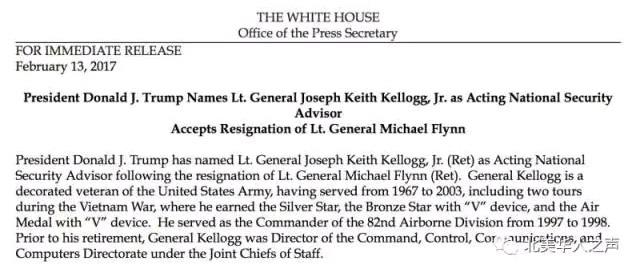 川普政府遭遇最重大打击:美国家安全顾问弗林辞职,凯洛格暂行代理