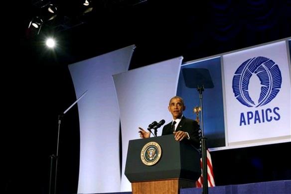 U.S. President Barack Obama delivers the keynote speech at the Asian Pacific American Institute for Congressional Studies' (APAICS) 22nd annual awards dinner at the Washington Hilton hotel in Washington May 4, 2016. JAMES LAWLER DUGGAN / Reuters