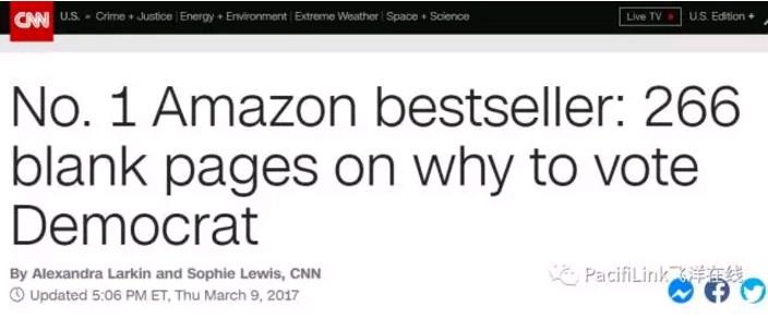 这本讽刺美国民主党的畅销书作者是毕业于普林斯顿的 Michael Knowles。他解释说,“我们苦心钻研多年,实在找不到支持民主党的理由......纵观民主党的历史,再看看他们在经济,外交,安全,民权方面的记录,我觉得还是一个字不写比较好。这样还能当记事本用。” 对了,封面上还印着政治评论家 Ben Shapiro 的书评:深度好文。 无字书跃至榜首的新闻一瞬间席卷网络!左派媒体,强烈支持民主党的CNN居然也撰文报道: