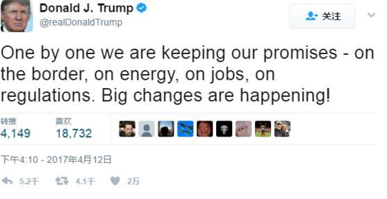 禁穆令和废医改遇阻,贸易战搁浅,疏远班农,示好耶伦,攻打叙利亚,人民币没有操纵,特朗普的“百日新政”承诺几乎全军覆没。离履新百日还有不到三周的时间,特朗普越来越像一个正常的美国总统。 他在最新的Twitter中写道,“我们会一个一个地实现我们的承诺,关于边境、能源、就业和法规。巨大的变化就要发生了!” 而总统的助手和顾问们似乎没有那么乐观。 Politico网站报道援引一位白宫官员说道:“一百天是一个重要的节点,我们基本上只有两个半周的时间来扭转局势。这将是一项艰巨的任务。” 据该网站报道,上周二,超过三十位白宫官员在毗邻白宫的艾森豪威尔执行办公大楼的一个会议室内召开会议,商讨如何“重新包装”特朗普上任100天,以期将局势拉回正轨。 一位特朗普新闻团队成员抱怨道,“我们的责任是传递总统的信息,但很多时候我们似乎不了解他的意思。” 特朗普曾在竞选时的“葛底斯堡演说”中,发布了他的革命性的入主白宫100天计划,作为他“与广大美国选民的契约”。 然而目前看来,特朗普不仅在包括医改、税改等关键性的承诺上毫无进展,而且在某些关键问题的立场上甚至出现大逆转。 在周三接受《华尔街日报》采访时,这位曾经的“非主流总统” 在包括美元利率、中国外汇政策等核心政策问题上作出与竞选承诺大相径庭的表态,立场越来越像主流政治家靠近。 移民政策 特朗普“百日计划”承诺,遣返大于两百万的非法移民罪犯。 倘若对方国家不愿意接收, 则取消对方国家的签证,还表示将暂停从有恐怖主义倾向的、且移民审查失效的国家接受移民,且所有来美国的移民必须接受极端审查。 特朗普上台后推出“禁穆令”,两次遇阻。夏威夷的联邦法官德里克·沃森(Derrick Watson)当地时间周三(3月30日)宣布,对特朗普禁穆令的“临时限制令”转为“初步禁制令”,无限期延长移民禁令的暂停时间。 医疗改革 特朗普承诺撤销和替换奥巴马医保Obamacare 法案。然而上个月,众议院共和党议员未能获得足够支持票以通过其医改法案,目前医改已经搁置。 税收改革 特朗普承诺承诺将减免中产阶级和其他多数美国人的税收,将通过减税和简化税法使得GDP增速达到4%、产生两千五百万个新工作的经济计划。按照特朗普税改计划,中产将得到最大的税务减免,一个两个孩子的中产家庭会有35%的税务减免,商业税率会从35%减少到15%。 然而截止目前,税改还未被提上特朗普的议事日程。 外交政策 在叙利亚问题上,特朗普的立场发生了180度大转弯。特朗普此前多次呼吁时任总统奥巴马不要对当年的化学武器袭击事件采取军事行动,并警告称,攻打叙利亚只会给美国带来麻烦。但就在上周,特朗普一声令下,美军舰船向叙利亚一军用机场发射了59枚战斧式巡航导弹。 关于美联储 特朗普曾在竞选中攻击美联储主席耶伦,但在昨天接受《华尔街日报》采访时,他表示并不反对美联储主席耶伦在明年2月任期满后连任,但目前做任何决定都为时尚早。他还表示喜欢低利率环境。 关于中国汇率 特朗普在竞选中承诺,一上任就会将中国列为汇率操纵国。据美国《华尔街日报》昨日报道,美国总统特朗普当天表示,美国政府不会在本周即将发布的一份报告中将中国列为“汇率操纵国”。