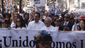 同样,在加州旧金山今天也又上万人参加游行,人群从从市中心的Justin Herman广场集合,向市府广场(civic centre)进军。途经渔人码头、市场街南区SOMA等地。 旧金山市华裔市长李孟贤今天也到场,他与游行的人群一起拉着横幅,早在去年川普竞选成功后,李孟贤就多次宣布旧金山市不会因为总统的更替而改变其价值观,将会继续保持收容和庇护城市政策不变。