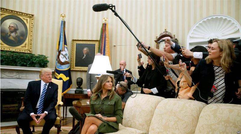 川普总统在总统办公室会见阿根廷总统马克里时对记者发表谈话,第一夫人在旁边(2017年4月下旬) 总统川普的白宫生活与他前任不一样的一个地方是,他这位三军统帅没有养宠物。 根据总统宠物博物馆,川普是自安德鲁·约翰逊总统以来第一位没有养任何宠物的总统。约翰逊在1865年4月15日至1869年3月4日担任美国总统。 总统宠物博物馆说,约翰逊会在地上留点面粉给一窝老鼠,但是那实在算不上宠物。 川普的前任奥巴马有两只葡萄牙水犬,波和桑尼。