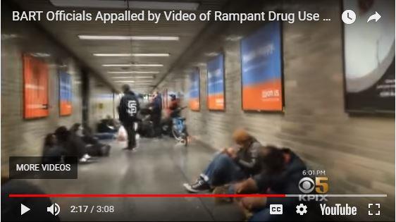 据美国新闻媒体CBS在旧金山当地的电视台报道,在旧金山地铁线(BART)市政中心站,美国的两大公共健康危机,无家可归与滥用毒品,每天都在上演令人憎恶的一幕。