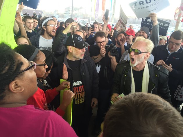 A short distance away from the main group of quarreling supporters, two men angrily shouted at each other over whether America was turning into Nazi Germany.