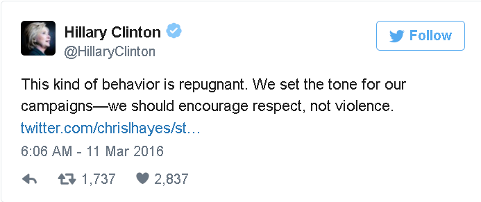 On Wednesday, meanwhile, a 78-year-old white male audience member at a Trump rally in North Carolina was videotaped sucker-punching a black protester being escorted from the event by police. The man, John McGraw, was later charged with assault and battery. But it was the protester who ended up in handcuffs at the rally.