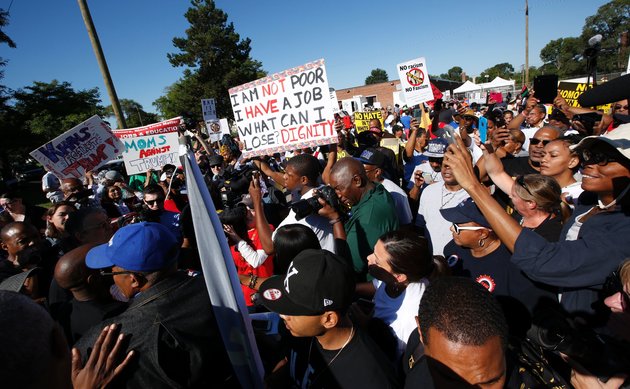 Still, a message of job creation and economic growth could resonate in Detroit, where the poverty rate is 40 percent. The stretch of Grand River Avenue where Great Faith Ministries is located is full of shuttered storefronts. Across the street from the church, Evergreen Furniture was open Saturday, but owner Lonnell Bailey said business has been a struggle.